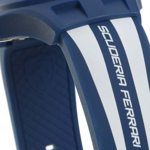Aerodynamics and aesthetics blend seamlessly in this line of casually sophisticated Scuderia Ferrari timepieces. Designed to hit the racetrack in sleek, wind-deflecting style, Aerodinamico features an integrated, ventilated silicone strap molded to echo the design of the diffuser on the Scuderia Ferrari single-seater. Its masculine 46mm TR90 thermoplastic chassis reveals a distinctive stepped case design with curved rectangular contours..